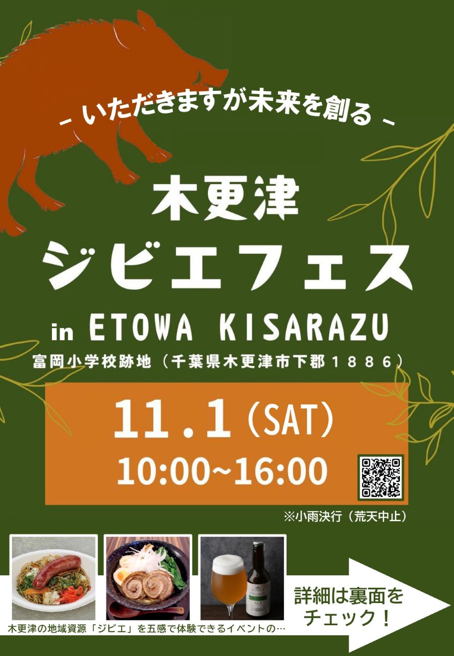 11月1日(土)木更津市下郡のETOWA KISARAZUで「木更津ジビエフェス in ETOWA KISARAZU」開催