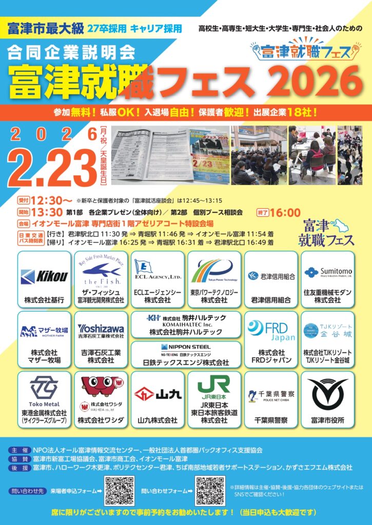 有名企業が集結!2月23日(祝)イオンモール富津で富津就職フェスが開催されます!